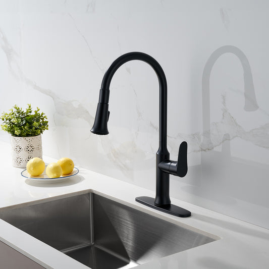 TimeArrow Kitchen Faucet with Pull Out Sprayer Matte Black, High Arc Single Handle Kitchen Sink Faucet with Deck Plate, TAF782C-MB