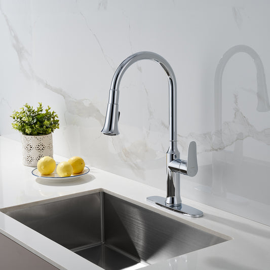 TimeArrow Chrome Single Handle Kitchen Faucet with Pull Down Sprayer and Deck Plate, TAF782C-CP